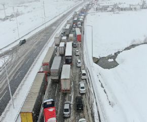 Karayolunda kar esareti! Kuyruk 25 kilometreyi aştı.