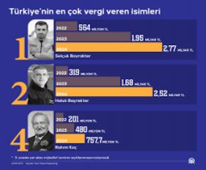 Selçuk Bayraktar, 2024 yılı vergilendirme dönemine ilişkin 2 milyar 767 milyon 587 bin lira, Haluk Bayraktar da 2 milyar 528 milyon 619 bin lira gelir vergisi ödeyerek ilk iki sırada yer aldı.